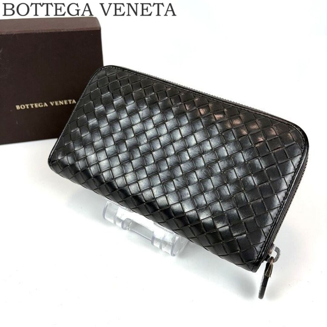 良品 ボッテガヴェネタ 長財布 イントレチャート ラウンドファスナー レザー