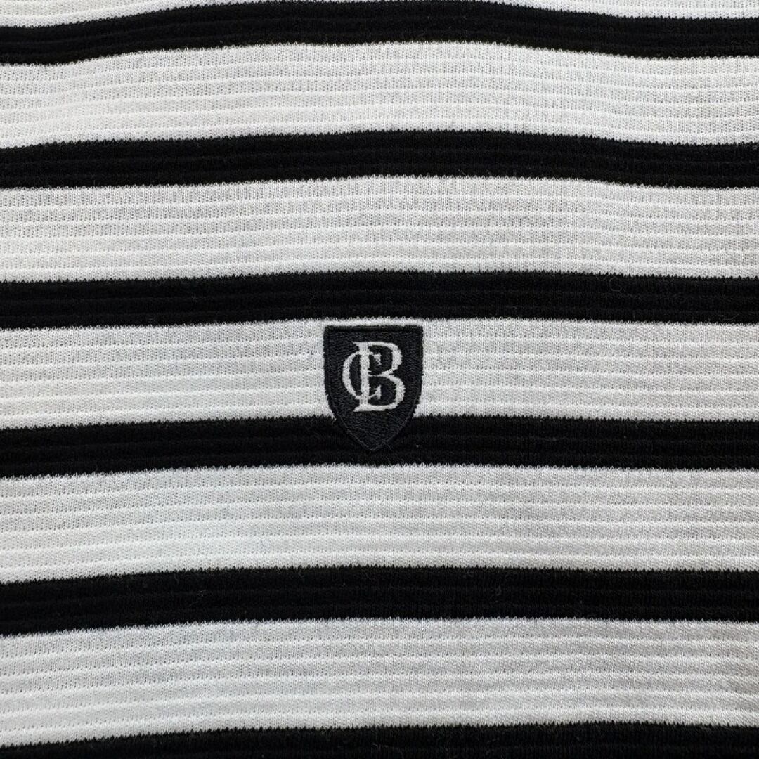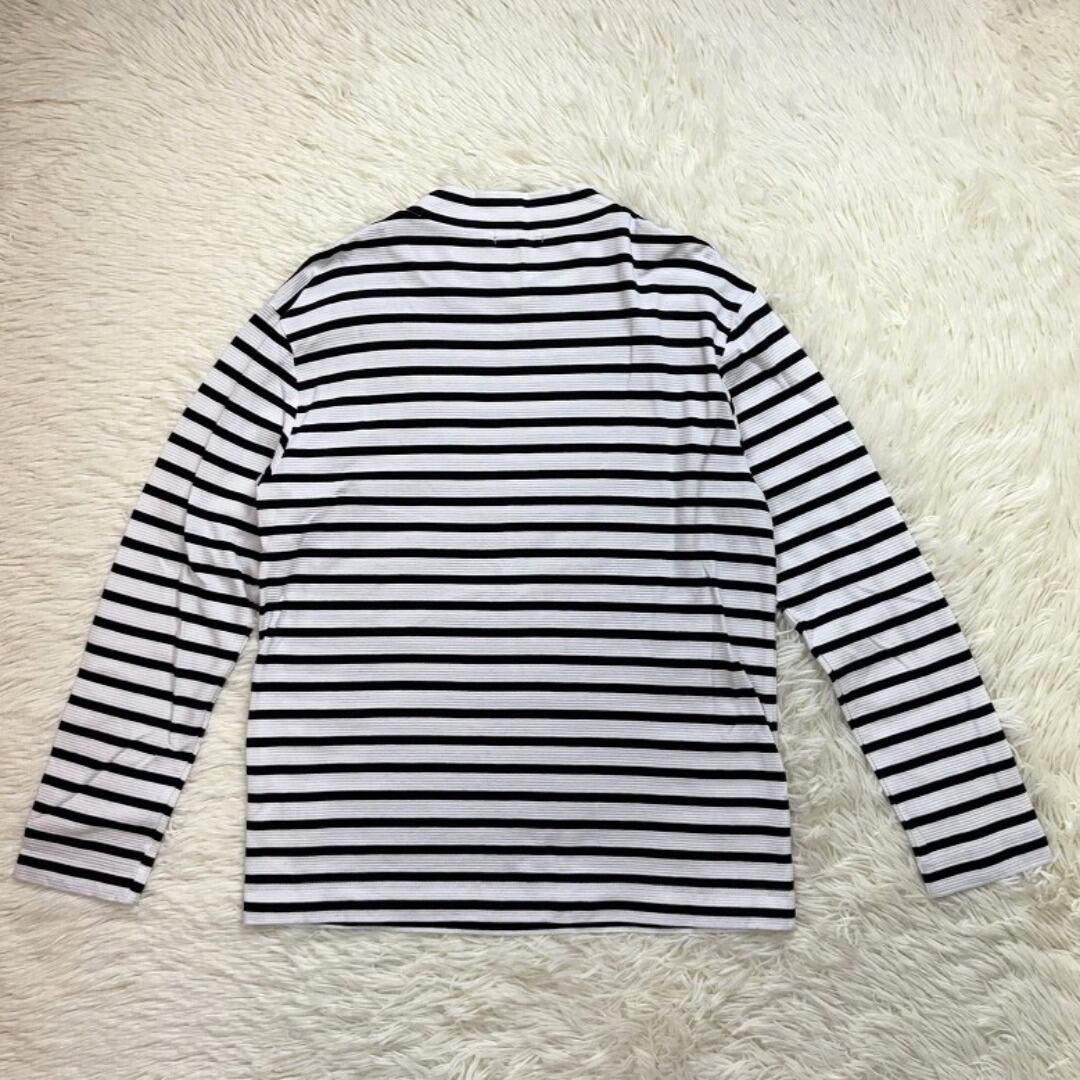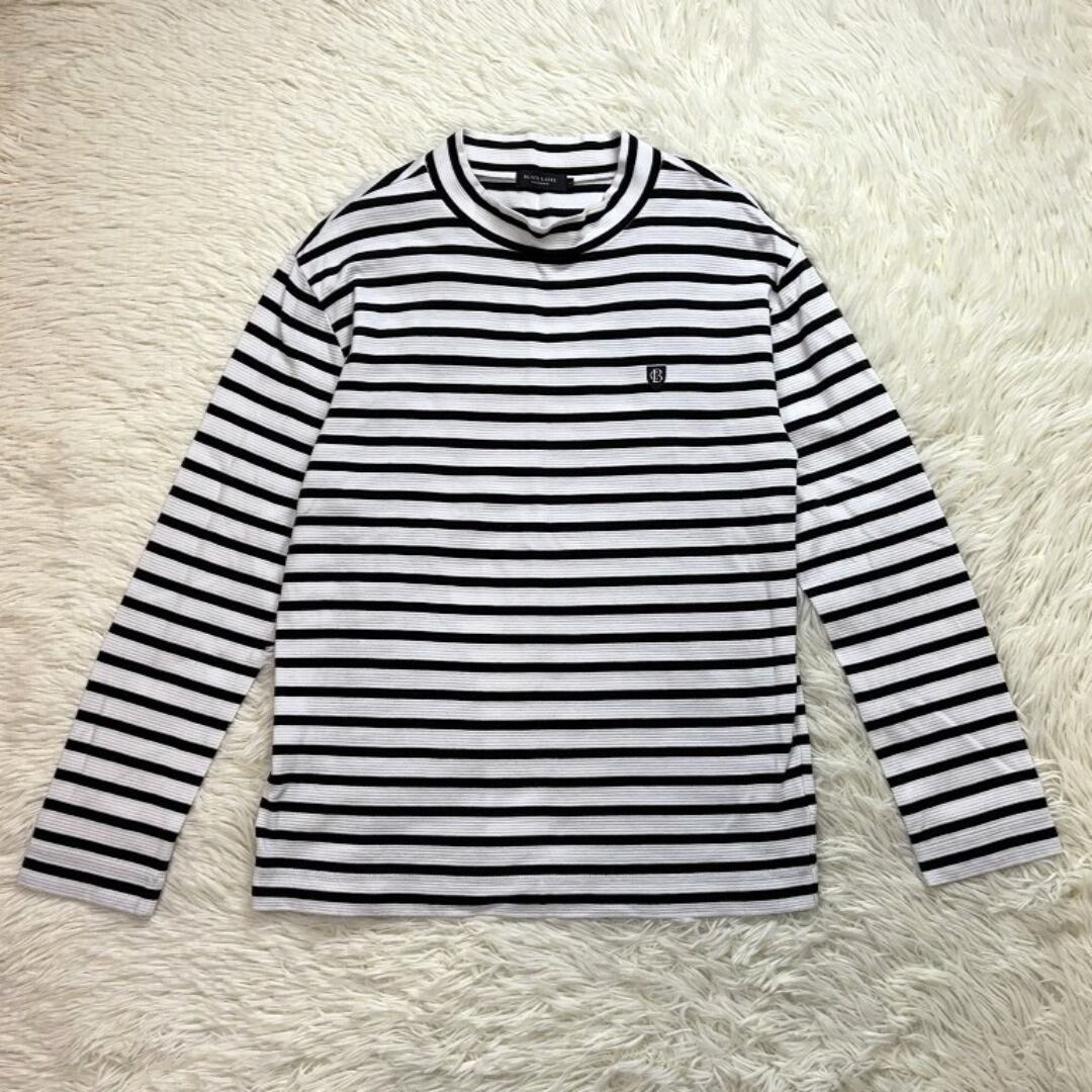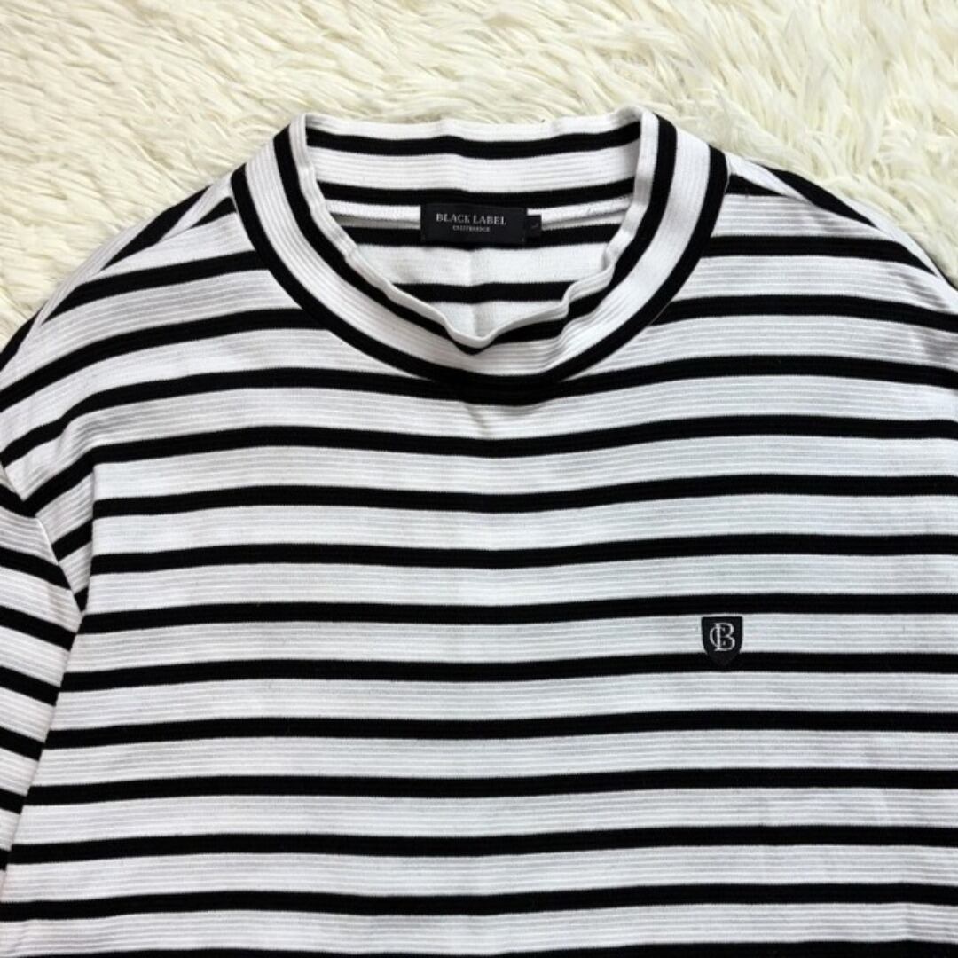 良品 BLACK LABEL CRESTBRIDGE ブラックレーベルクリストブリッジ ロンT L メンズ リップルボーダーモックネックロンT 長袖Tシャツ ホワイト×ブラック 白×黒