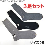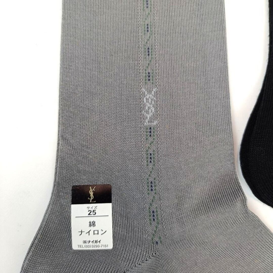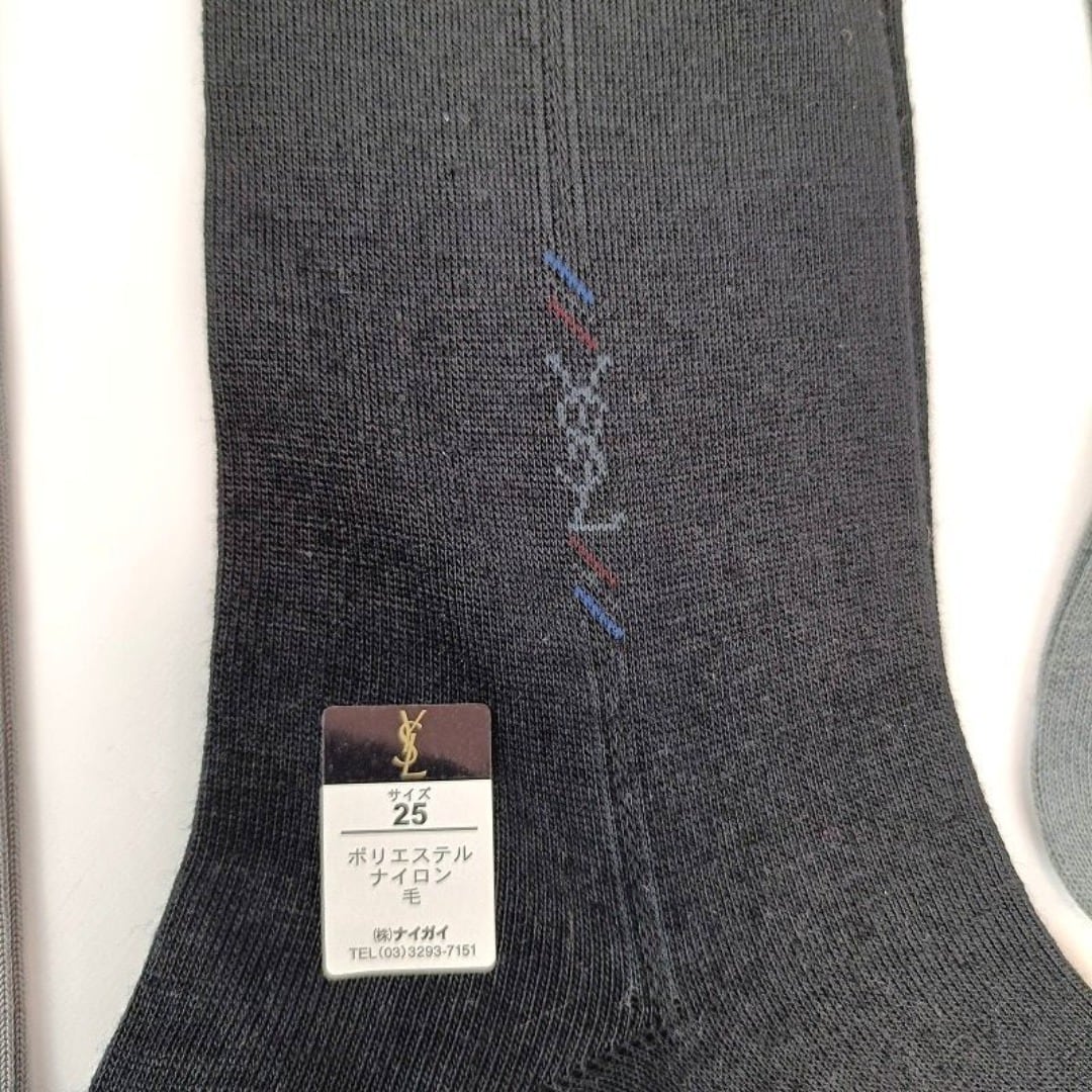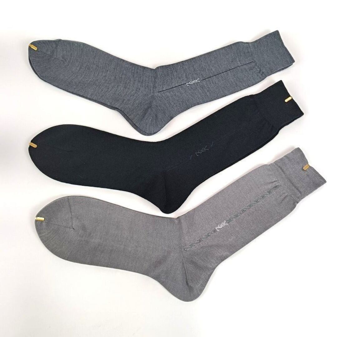 未使用品 YVES SAINT LAURENT イヴサンローラン 靴下 ソックス まとめ売り 3点セット サイズ25 グレー ネイビー メンズ 紳士 フォーマル ブランド