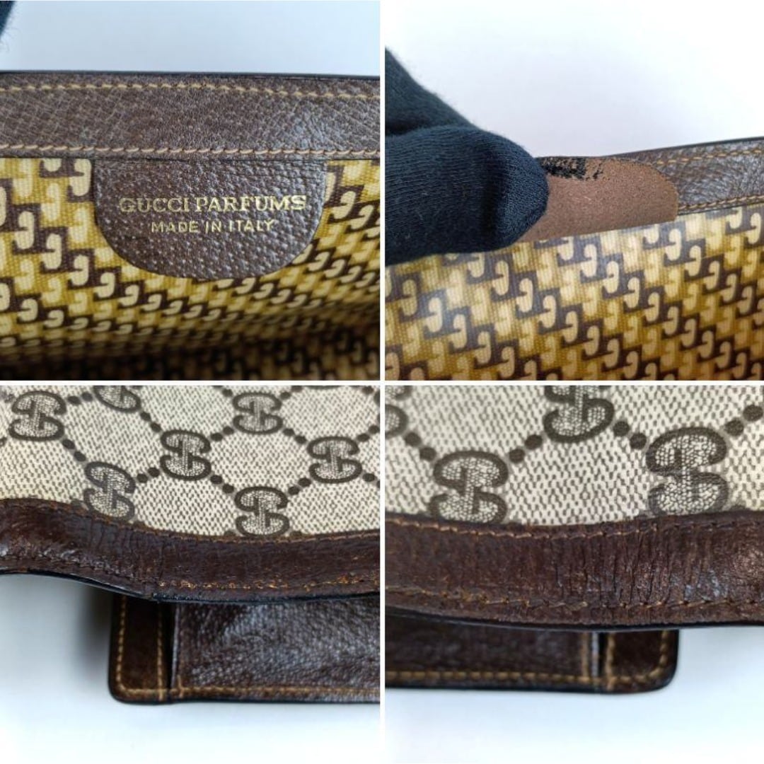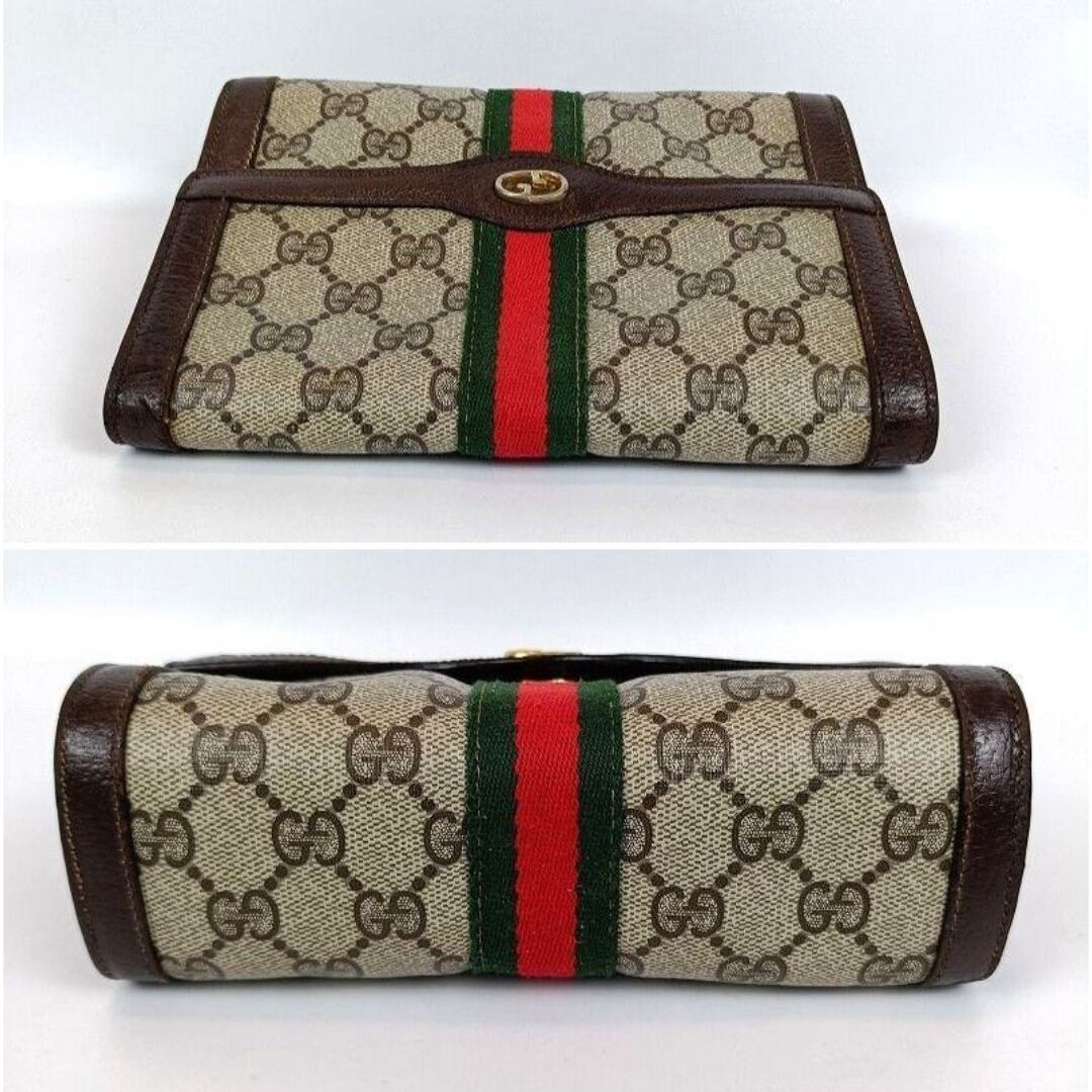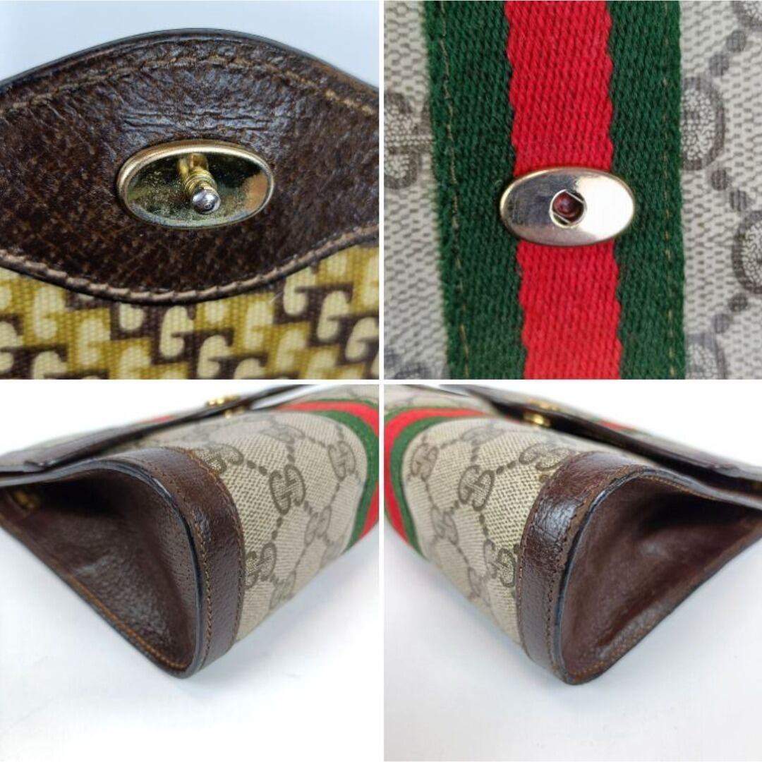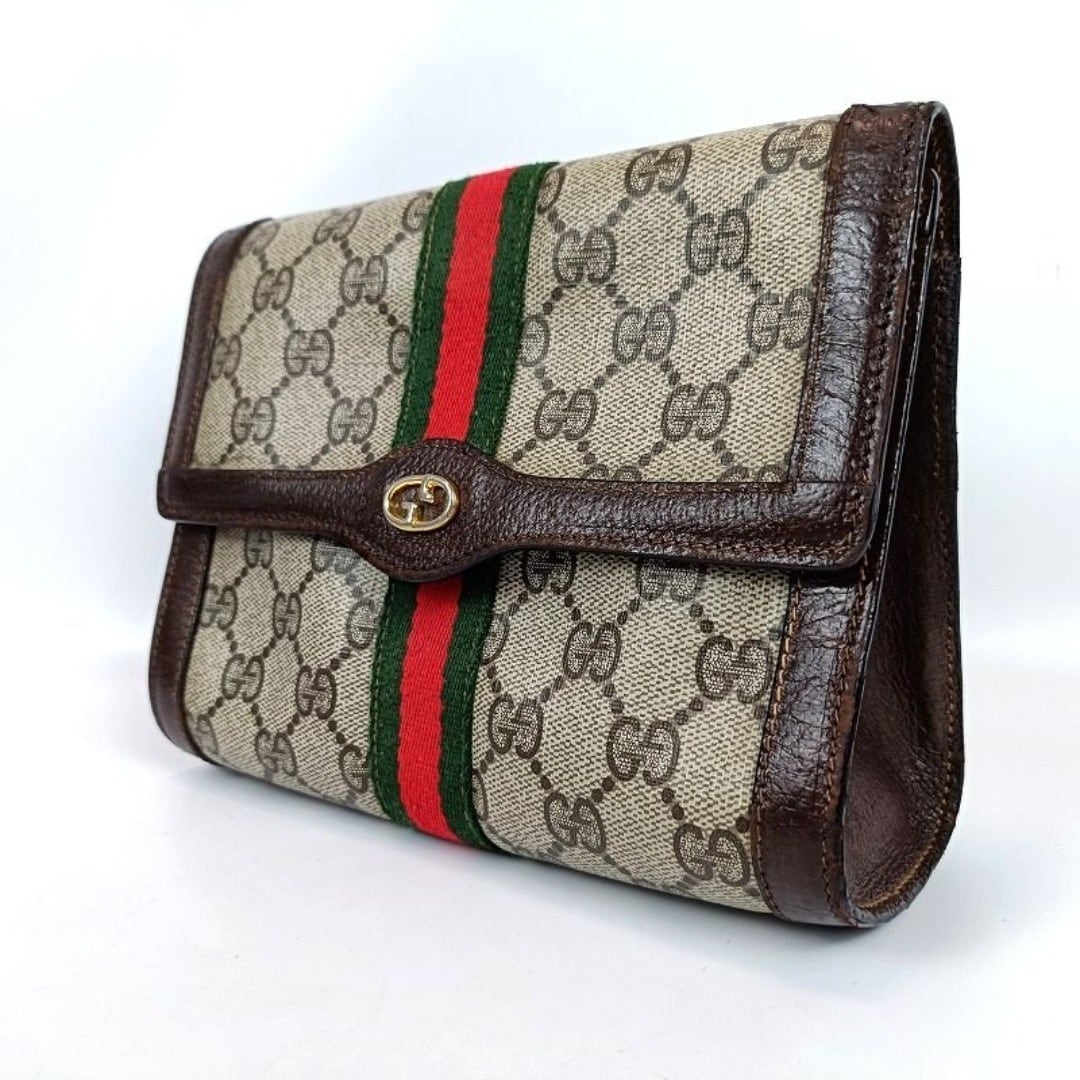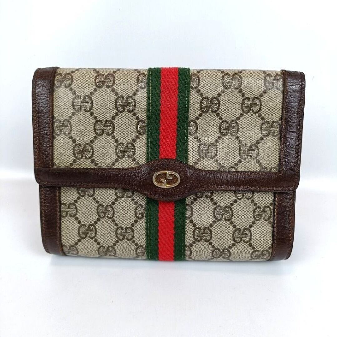 GUCCI グッチ クラッチバッグ セカンドバッグ PVC レザー GGスプリーム GG柄 シェリーライン オールドグッチ グレー×ブラウン系 ヴィンテージ ポーチ
