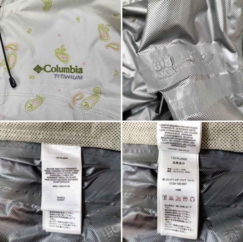 Columbia コロンビア マウンテンパーカー ペイズリー柄 レディース L ライトグリーン系 ジャケット 薄手 ナイロンパーカー アウター 中古