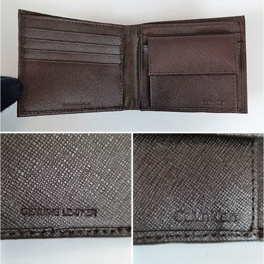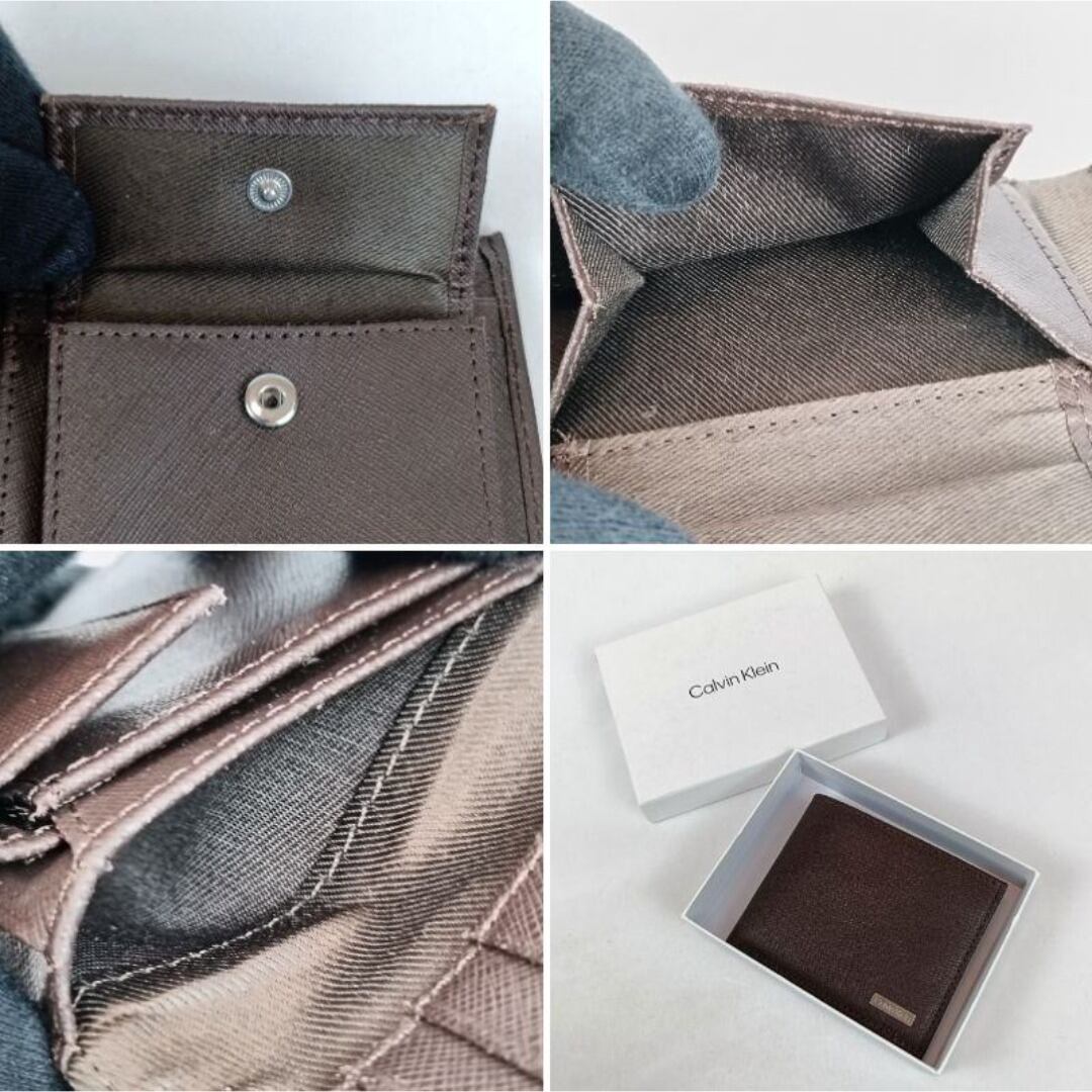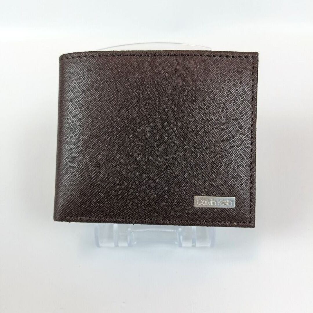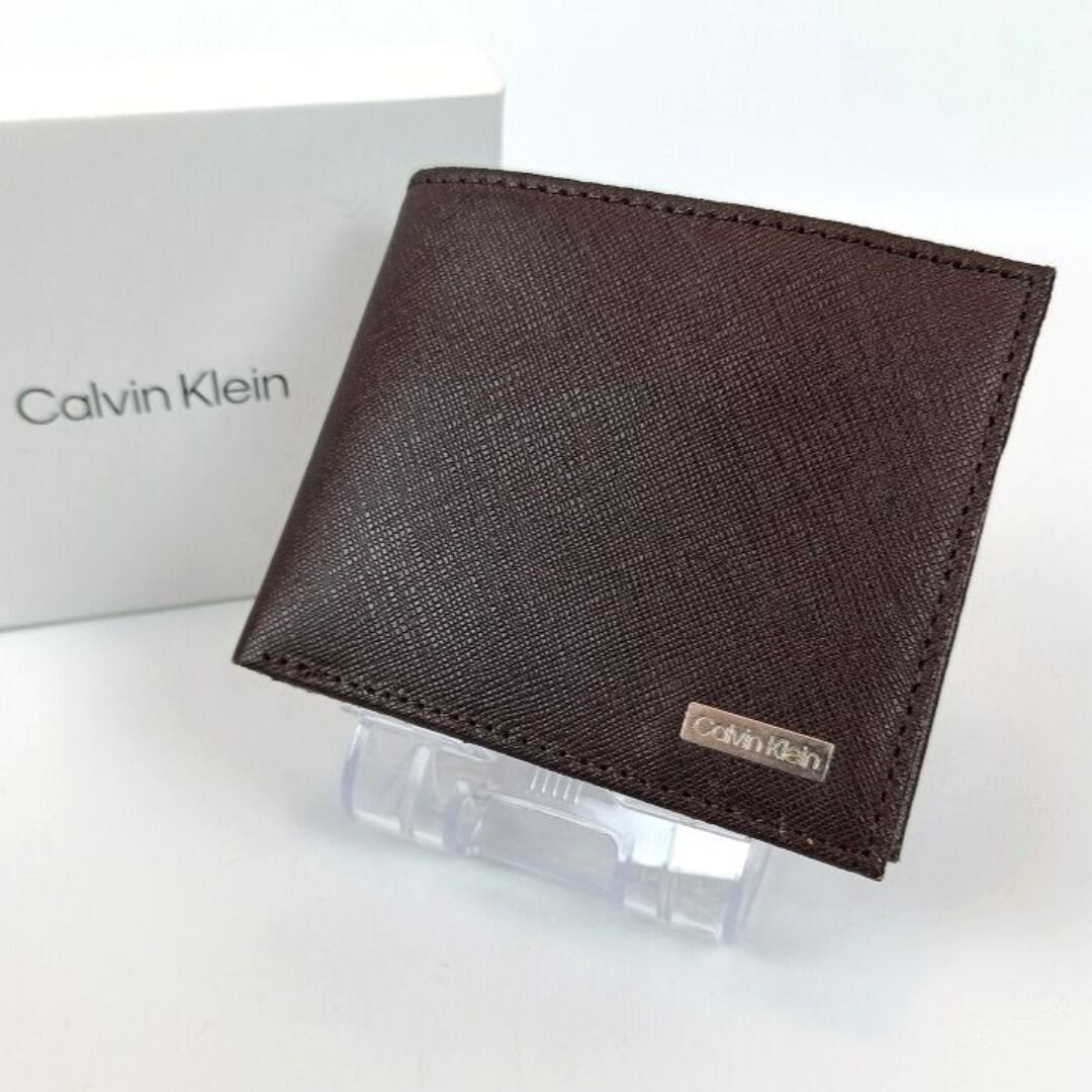 未使用 カルバンクライン 二つ折り財布 ブラウン レザー メンズ ロゴプレート