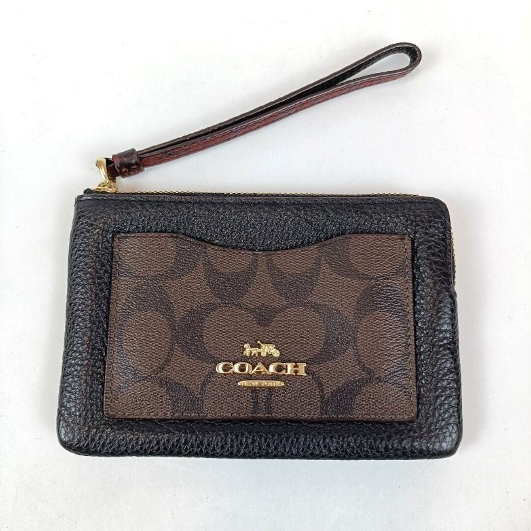 ほぼ未使用 COACH コーチ ファスナーポーチ シグネチャー PVC レザー