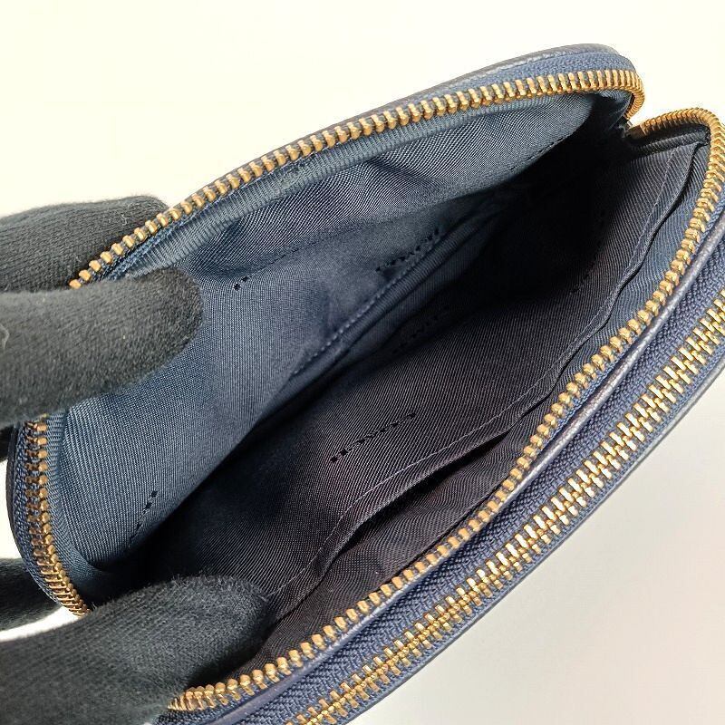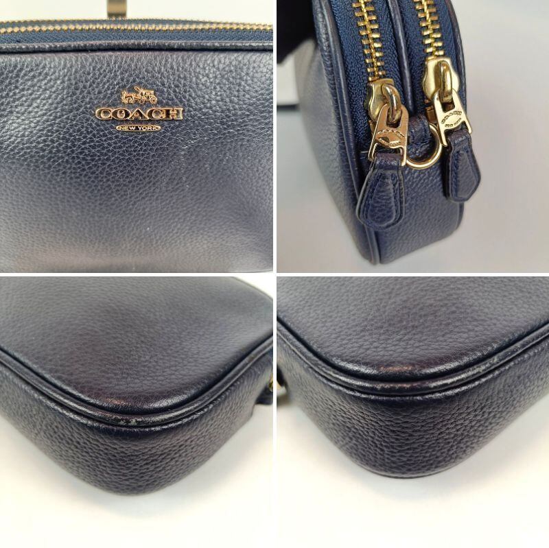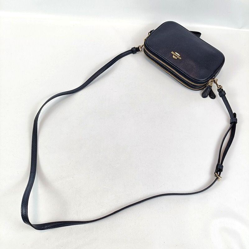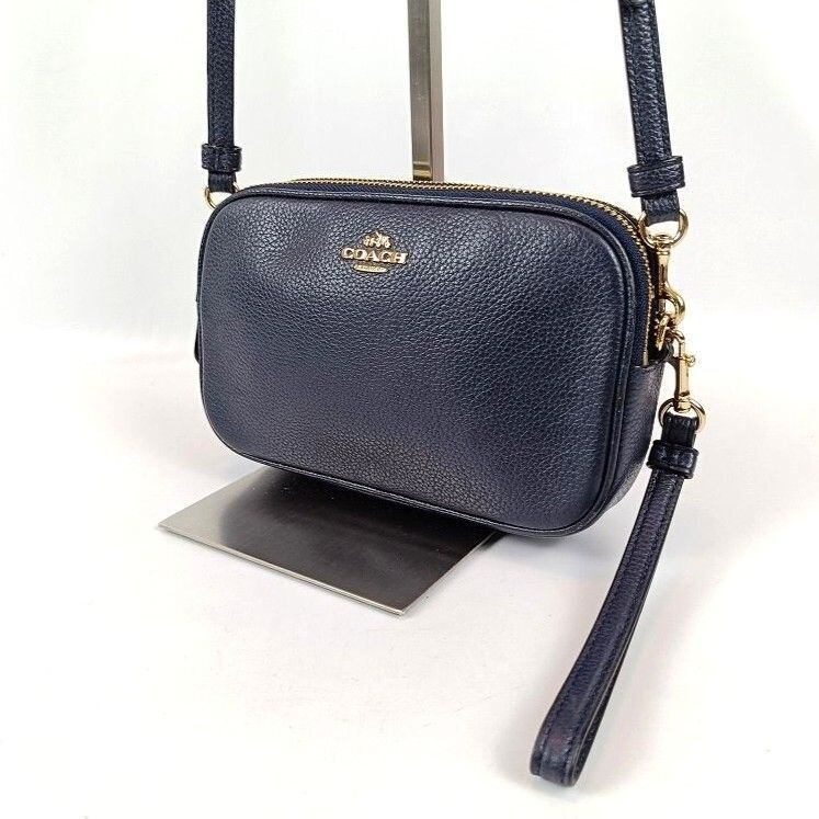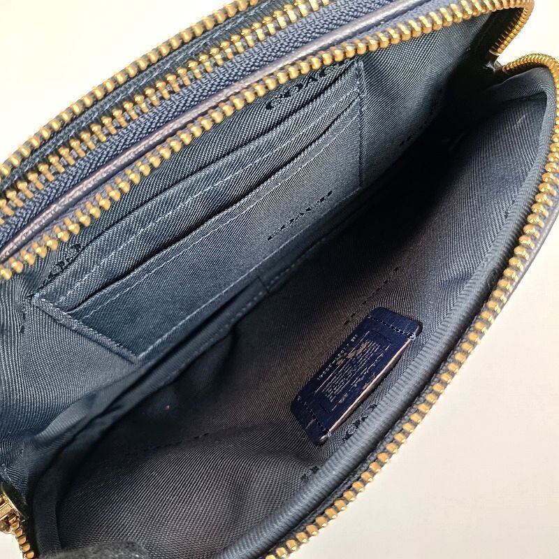 良品 COACH コーチ ショルダーバッグ ダブルジップ レザー ネイビー 65547 ミニ コンパクト ポシェット2WAY クラッチバッグ ポーチ カメラバッグ クロスボディ レディース ブランド 中古