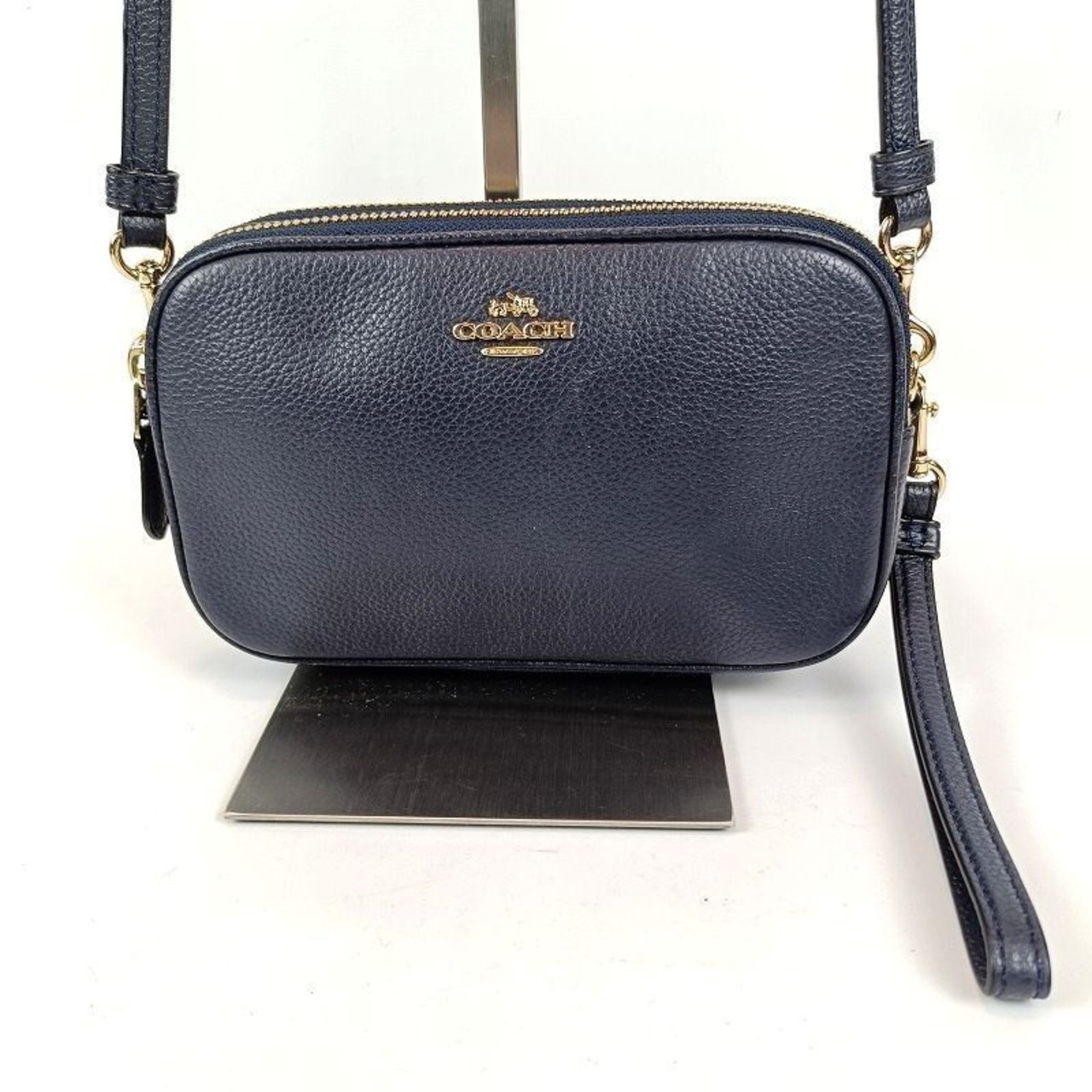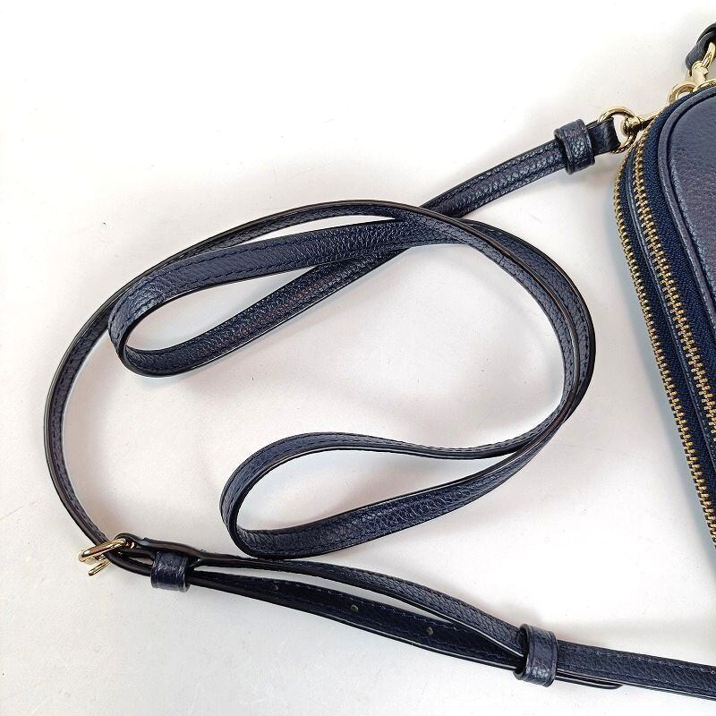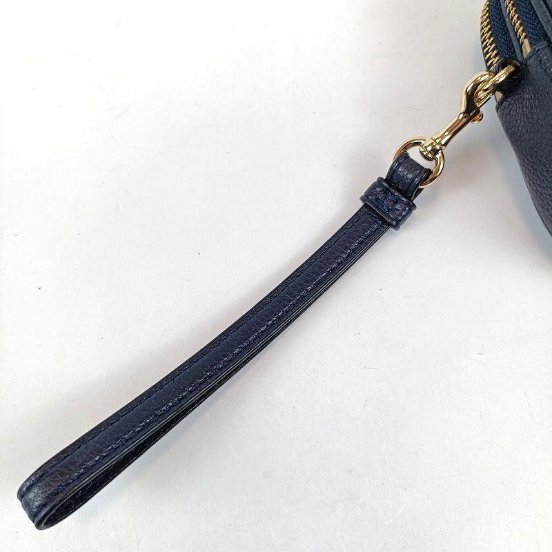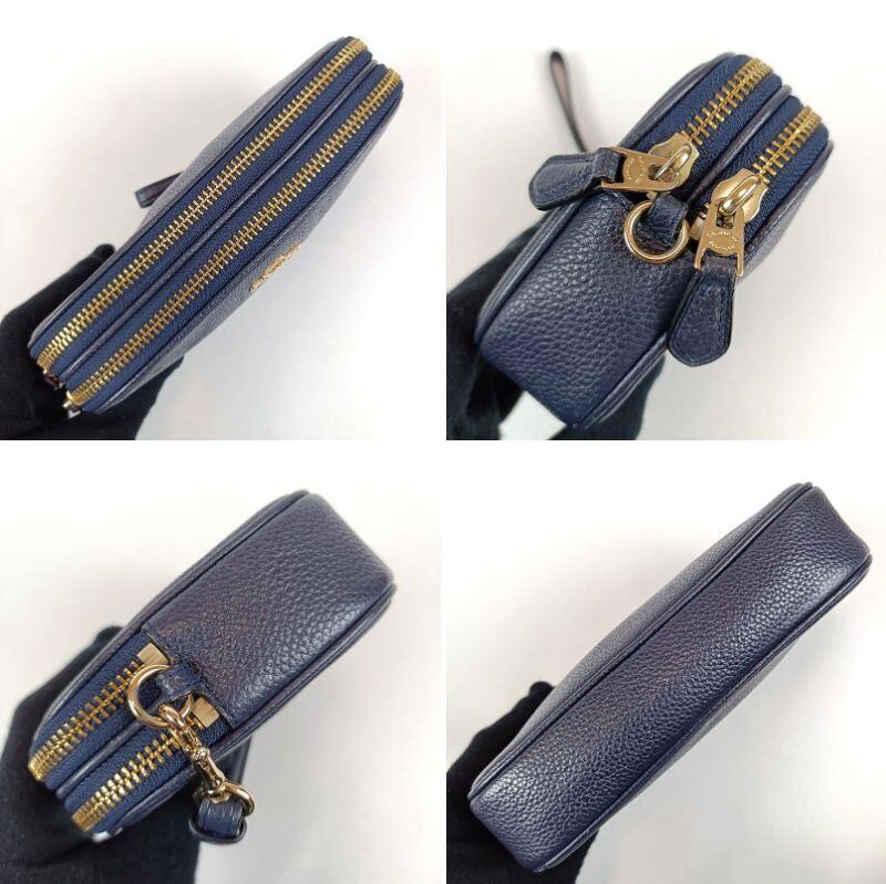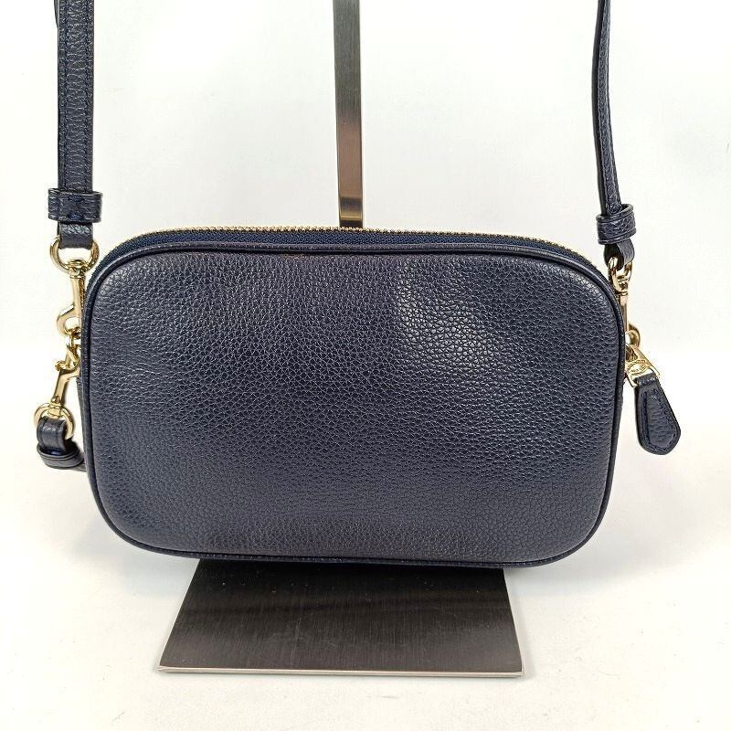 良品 COACH コーチ ショルダーバッグ ダブルジップ レザー ネイビー 65547 ミニ コンパクト ポシェット2WAY クラッチバッグ ポーチ カメラバッグ クロスボディ レディース ブランド 中古