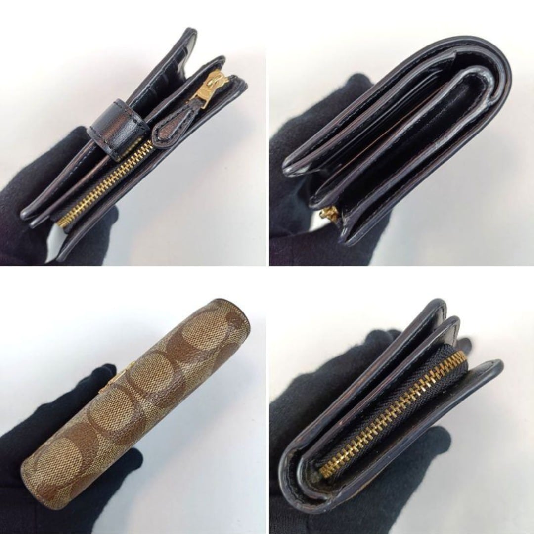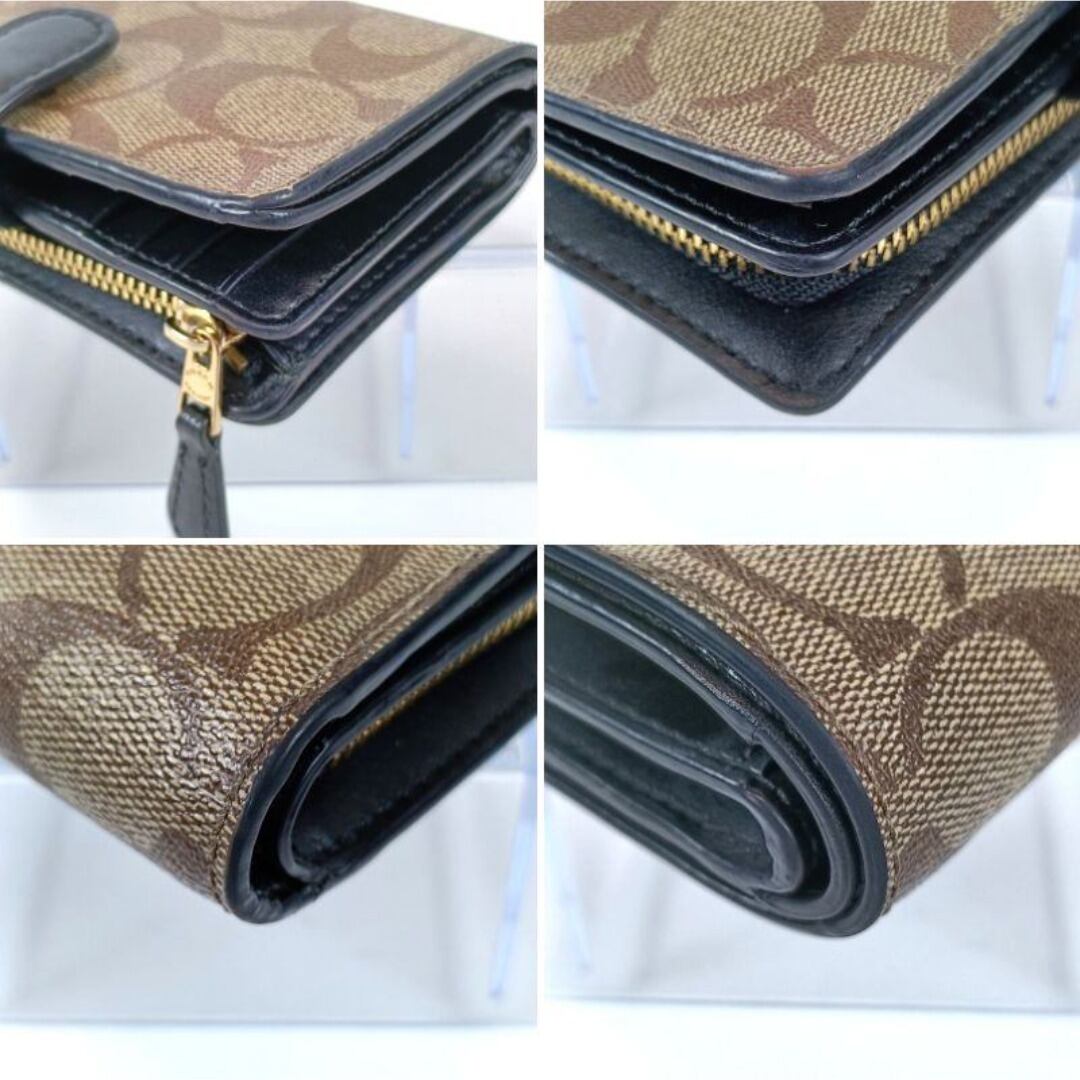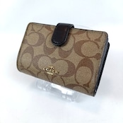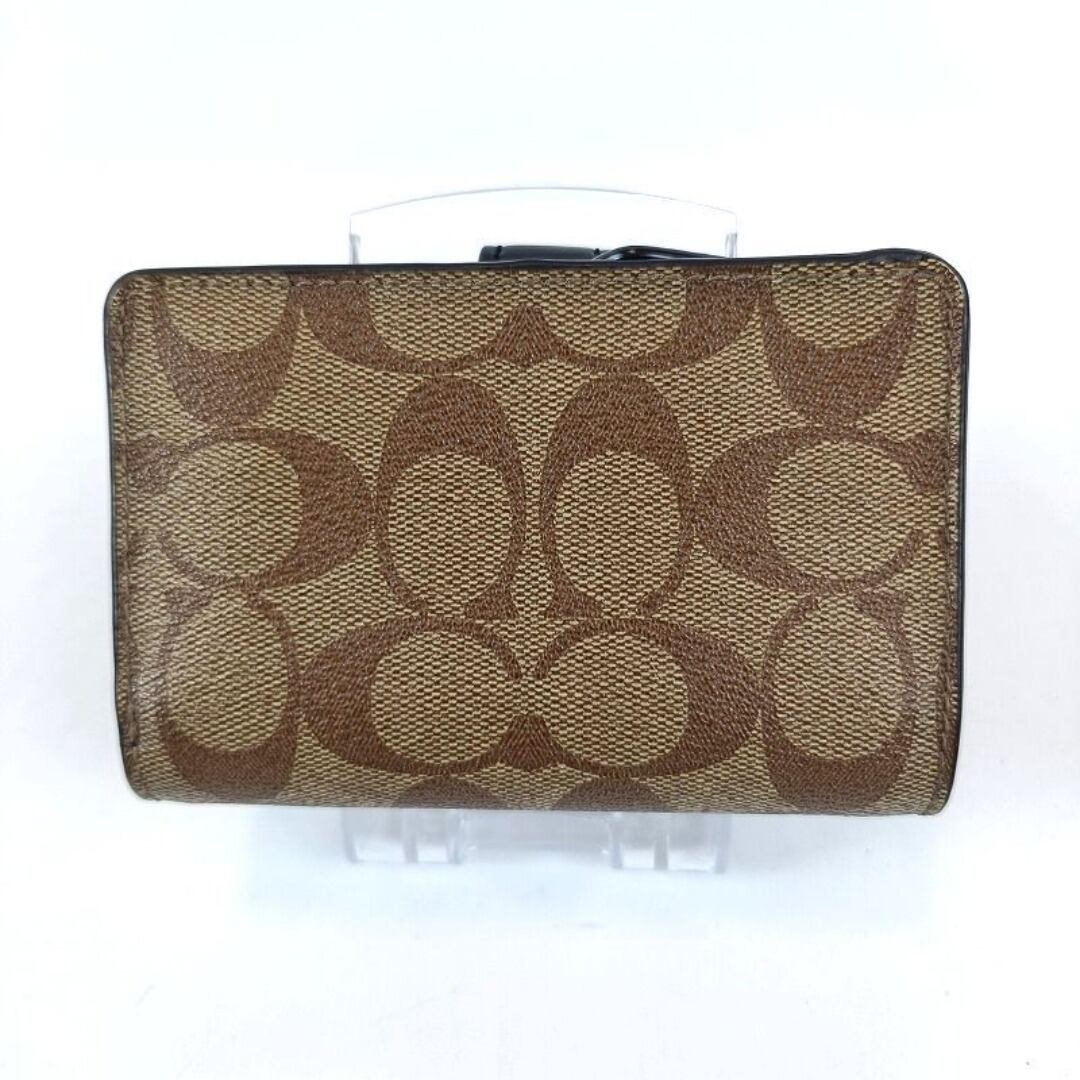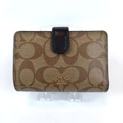 美品 COACH コーチ 二つ折り財布 PVC レザー シグネチャー ブラウン
