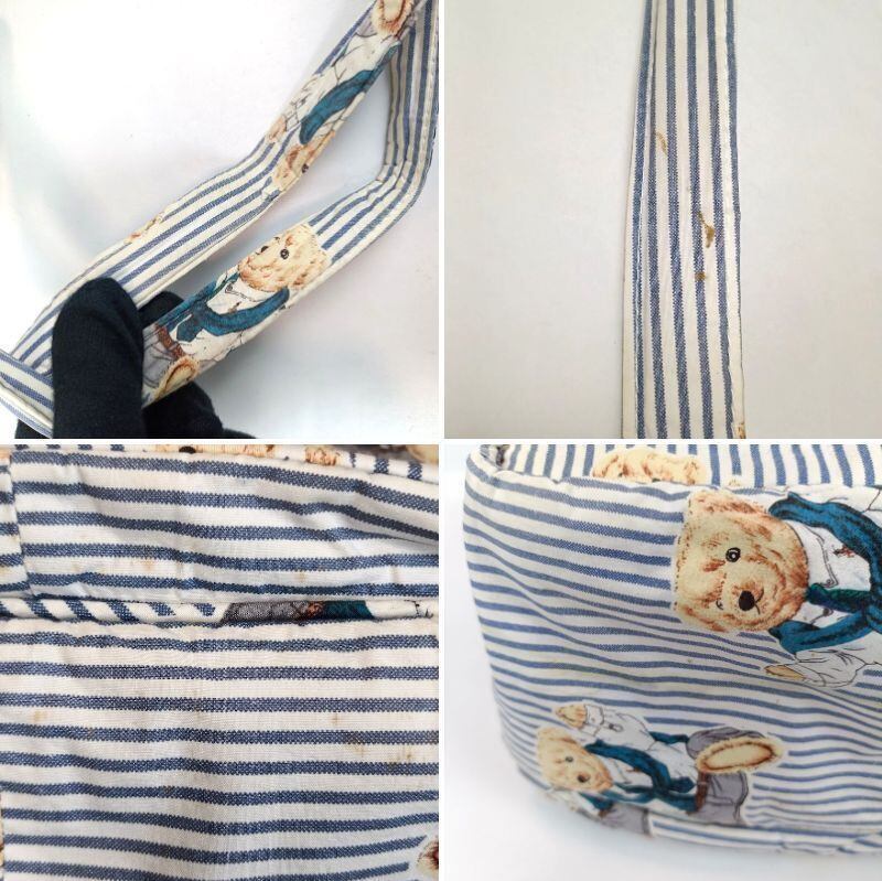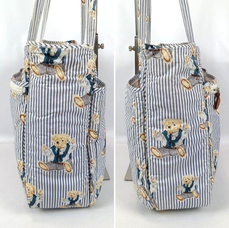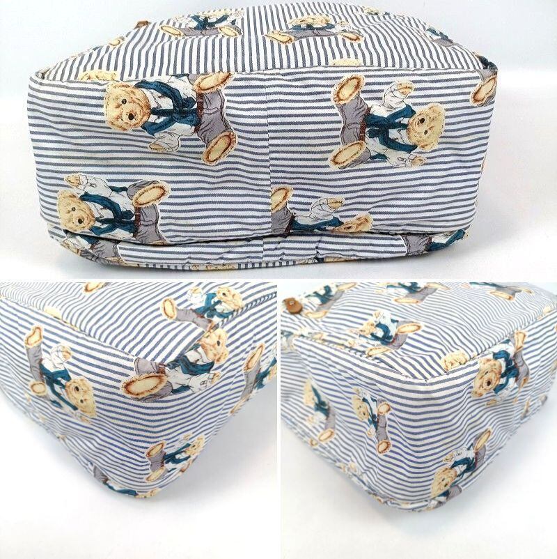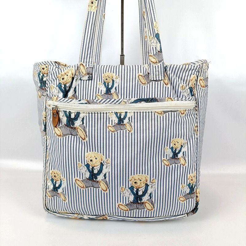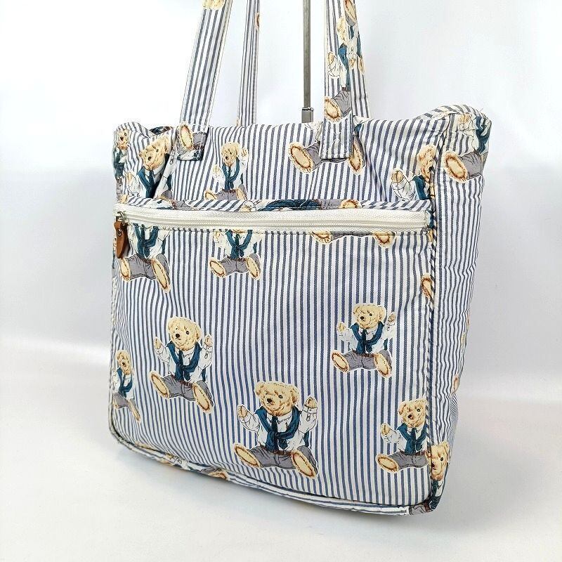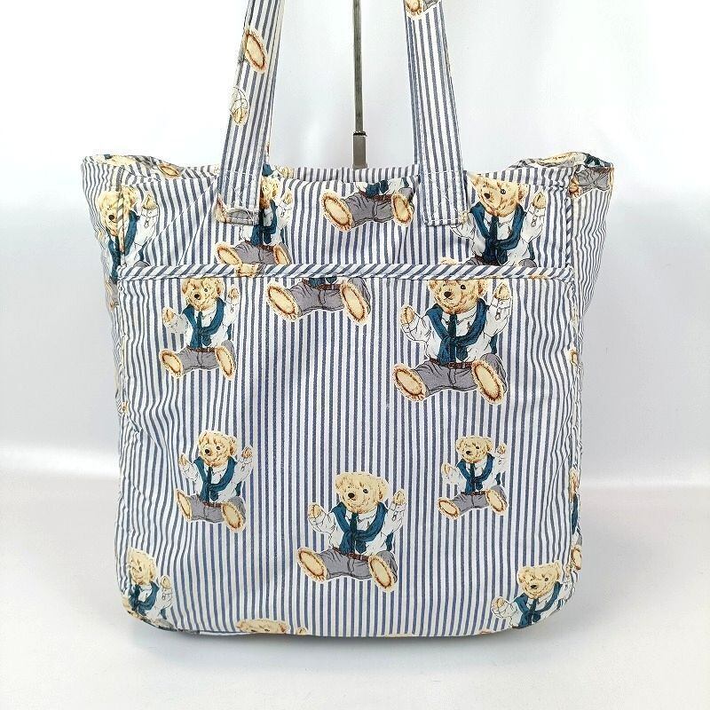 Ralph Lauren ラルフローレン トートバッグ ポロベア A4 PC ストライプ ホワイト×ブルー 大容量 レディース ブランド 可愛い レア 希少 入手困難 総柄 中古