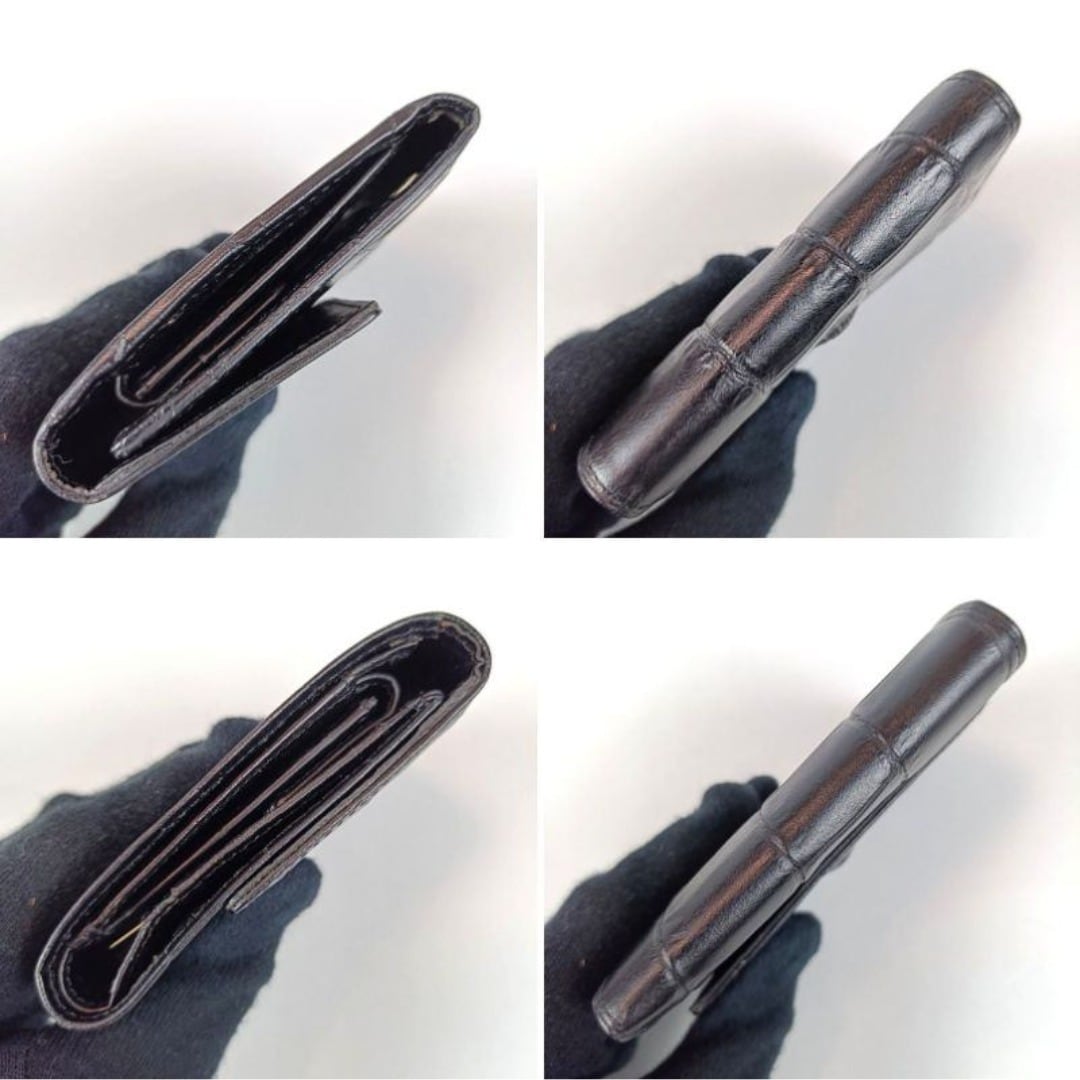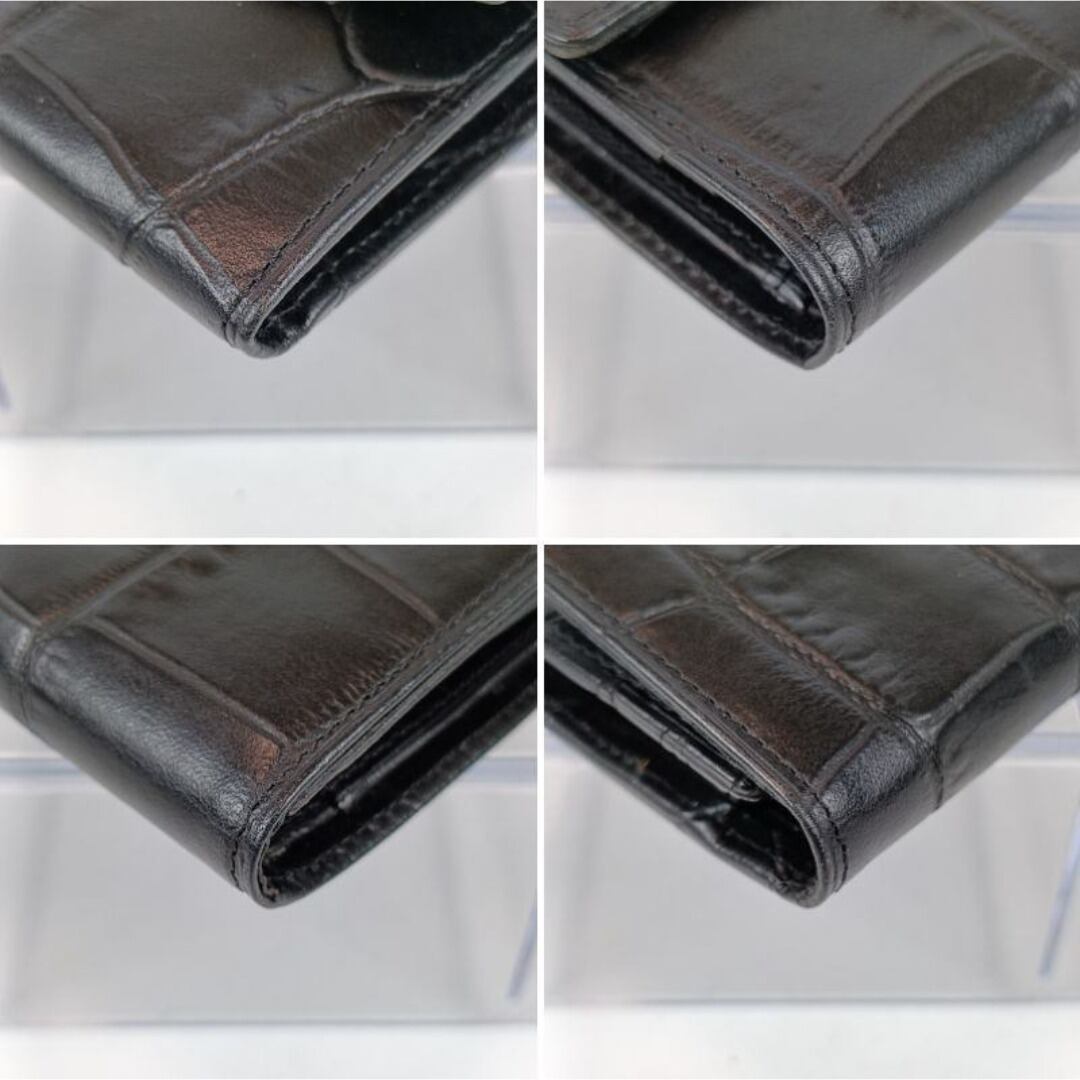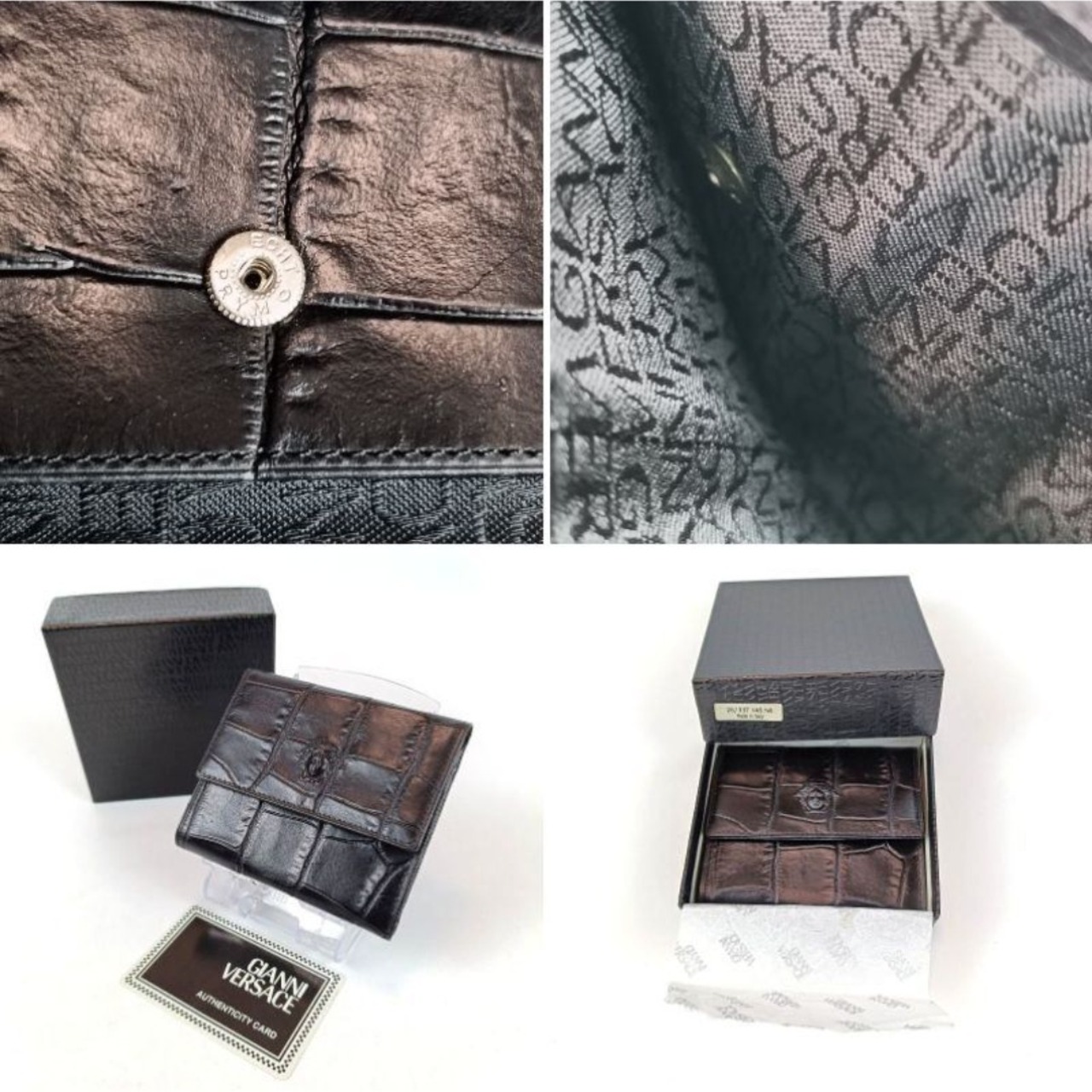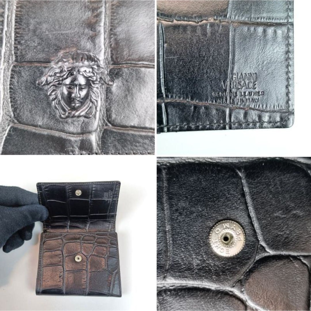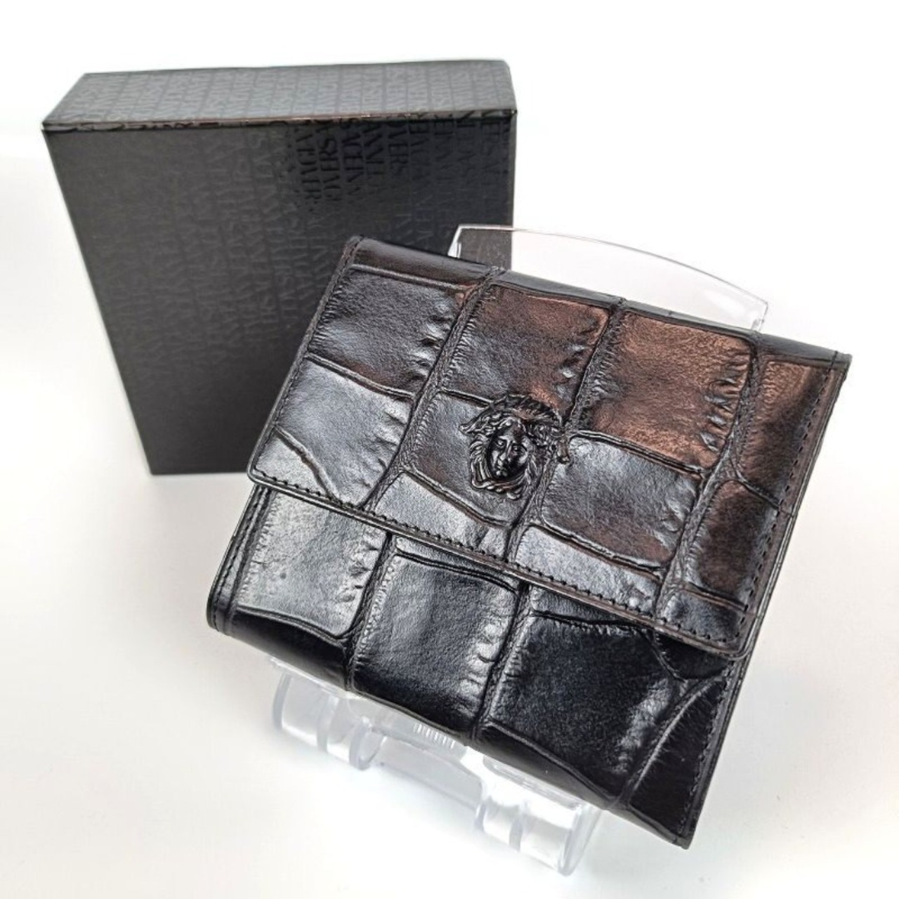 極美品 VERSACE ヴェルサーチ 三つ折り財布 クロコ型押し メデューサ 黒 イタリア製